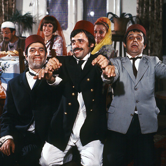 Yalan Yarim (1973) filminden Mehmet Çekmez, Tarık Akan ve Kemal Sunal