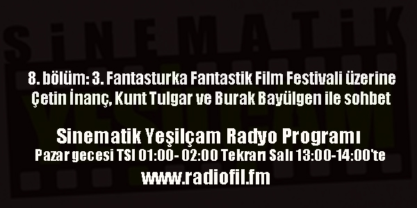 Radyo programımızın 8. bölümünde 3. Fantasturka Fantastik Film Festivali sonrasında Çetin İnanç, Kunt Tulgar ve Burak Bayülgen ile genel olaak festival ve festival gösterilen filmler üzerine sohbet ettik.