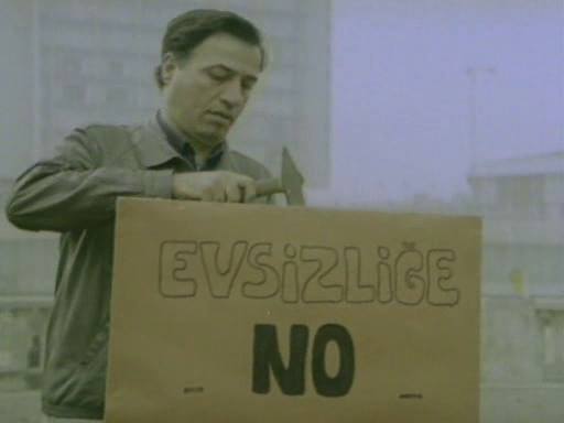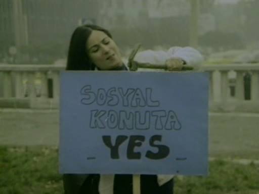Evli çift ilk gecesini Selim in dağıtım kamyonunun arkasında geçirir ama onları gören gazete çalışanı bu işin böyle olmayacağını söyler.Bu rolü oynayan Hüseyin Kutman ın da az sayıda oynadığı sakin karakterlerden biri olduğunu söyleyelim. Taksim Gezi Parkına bir çadır kurar çiftimiz ve o zamanlardan bir sosyal konut isteğinde bulunurlar. Şimdilerde cılkı çıksa da bir TOKİ isteğidir bu. Çadırı zabıtalar yıkar, Aliye pes etmiştir. Evlerimize dönelim der ama Selim savaşmaya kararlıdır.Yeni açılan bir apartman sitesinin dairesine izinsiz girerler mavi hülyalar kurarlar ama bu çok sürmez. 10 dakika sürmeden polis çıkmalarını yoksa zor kullanacaklarını söyler. Burada Sunal’ın yaptığı konuşma artık onun olgunlaşan filmografisinin bir dışavurumudur.
