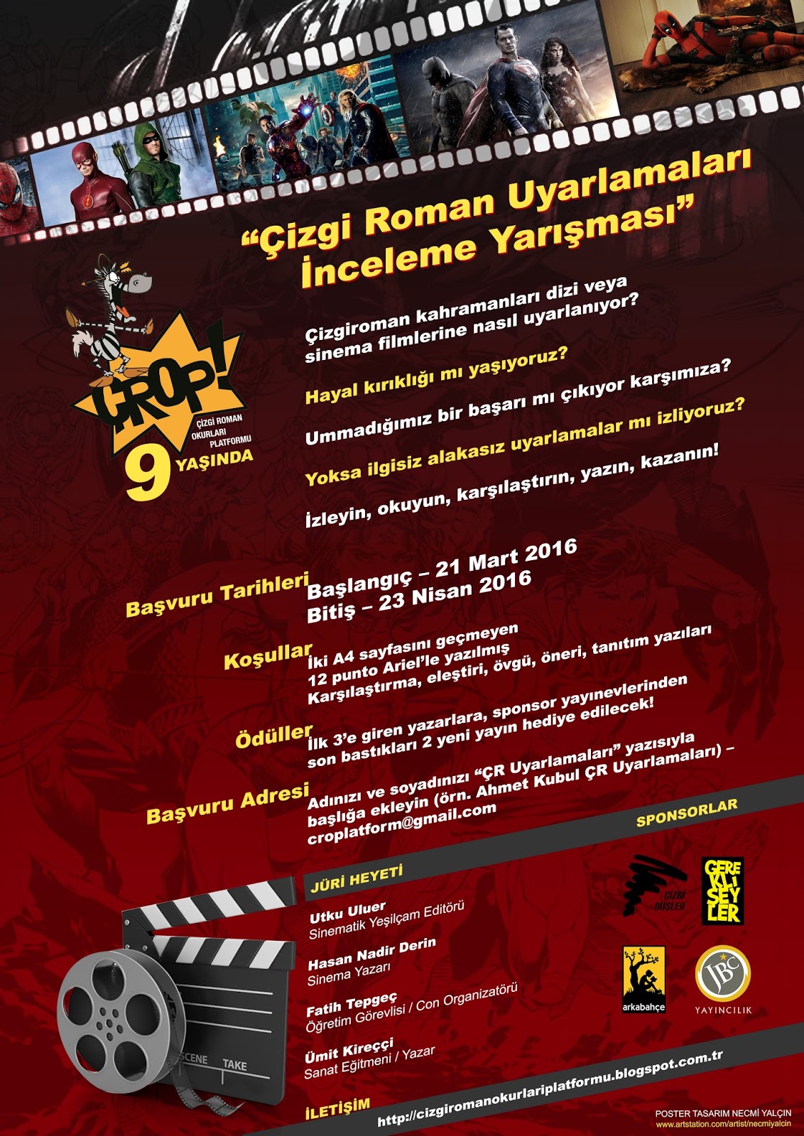 Jüri üyeleri arasında sitemizin Editörlerinden Utku Uluer‘in de jüri üyeleri arasında yer aldığı Çizgi Roman Uyarlamaları Yarışması başlıyor. Yarışma, kahramanların dizi veya sinema filmlerine uyarlanışı hakkında neler düşündüğünüz üzerine tasarlanmış. Okumayı az, yazamayı ise daha az seven ülkemizde içerik ve bilgi paylaşımı adına yazamaya hevesli olan herkesin ilgisini çekebilecek ve de cesaretlendirebilecek bir yarışma düzenlemiş Çizgi Roman Okurları Platformu. Yarışmaya katılmak için yapmanız gerekenler ise çok basit.