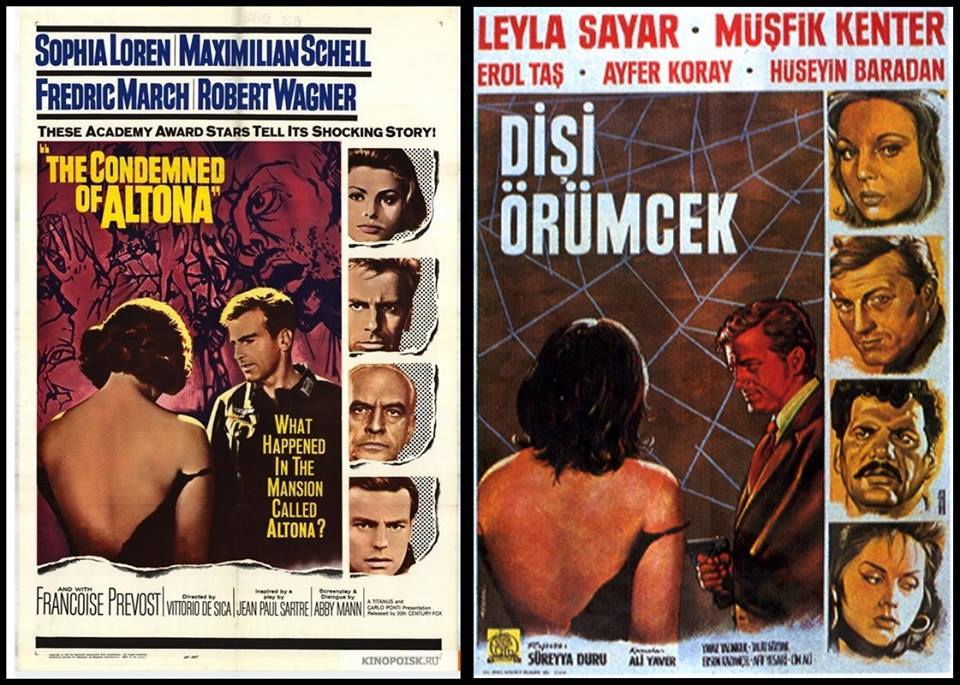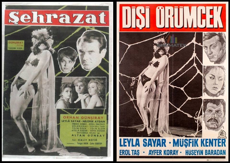 1963 yılı yapımı Dişi Örümcek filminin afişlerinden birisi, Halit Refiğ’in 1964 yılında çektiği ve halen kayıp olan Şehrazat Filminin afişi ile de benzerlikler taşır. İki filmde de Leyla Sayar oynamaktadır: