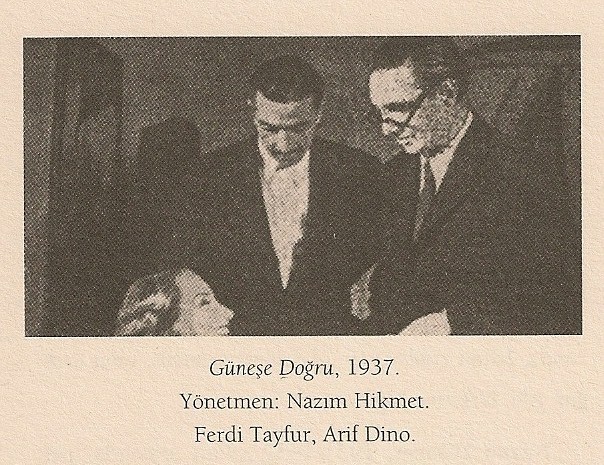 “İpek Film, Leblebiçi Horhor‘dan üç yıl sonra yeniden yapıma geçerken, sütten ağzı yanan insanların ihtiyatlılığıyla işe başladı. Bu kez , başlıca kişileri üçü geçmeyen , çalışma birliği küçük,”dar bütçeli” bir film çevriliyordu. Güneşe Doğru adını taşıyan filmin rejisörü, Ertuğrul‘un yanında İpek Film‘de senaryoculuk, rejisör yardımcılığı yapan Ran‘dı. Kendisi gibi genç bir ressam, Abidin Dino, dekorları hazırlıyor, Dino‘nun ağabeyi şair Arif Dino, Ferdi Tayfur ve Mediha adındaki genç bir kadın başlıca kişileri canlandırıyordu. Birliğin fotoğraf yönetmenliği de Lazar Yazıcıoğlu‘na verilmişti. (Nijan Özön – Türk Sineması Tarihi)