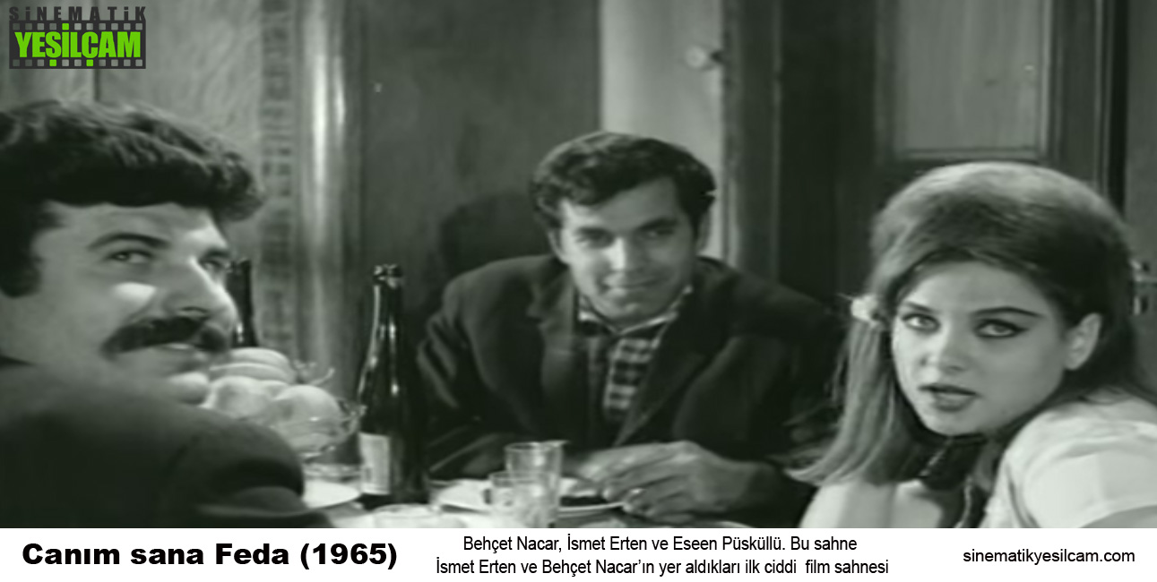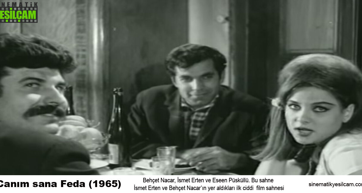 Bahsi geçen film: 1965 yılı yapımı CANIM SANA FEDA – Uğur Film yapımı. Künyesi: Yönetmen: Halit Refiğ / Senaryo: Safa Önal, Halit Refiğ / Görüntü Yönetmeni: Mustafa Yılmaz, Gani Turanlı / Fon Müziği: Rauf Tözüm / Yönetmen Yardımcısı: Savaş Eşici, Melih Gülgen / Oynayanlar: Cüneyt Arkın, Nilüfer Aydan, Esen Püsküllü, Muzaffer Tema