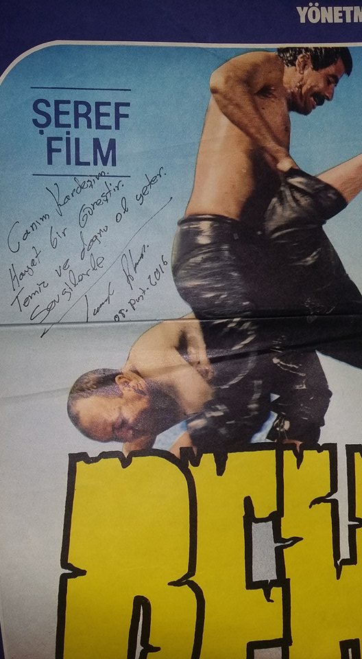 Pehlivan‘in afişini imzalarken bana her zaman yazdığı “Canım Kardeşim“le baslayan yandaki cümleleri yazdı. Biraz uyumak istedi, “Geldiklerinde beni uyandır” dedi. Ve Tarık’i gidip Bakırköy meydanından aldım. Okula geldik. Uyandırdım. Adaşı Tarık’i-ı çok sevdi. Sohbet ettiler. Tarık’in saçları uzundu, onun saçlarını görünce çok hoşuna gitti. “Tarıkcım aynı benim gençliğime benzemişsin” dedi.