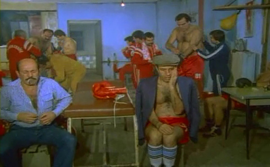 Filmin Afiş’ine konu olmuş en önemli sahnelerinden birisi de Boks sahnesidir. Charlie Chaplin tadında, güzeldir özellikle Dinçer Çekmez‘in katkısı önemlidir. Yukarı da Yadigar Ejder, Dinçer Çekmez ve Kemal Sunallı maç öncesi bir sahne yakaladım. Epey şamata sahnelerden birisi idi…