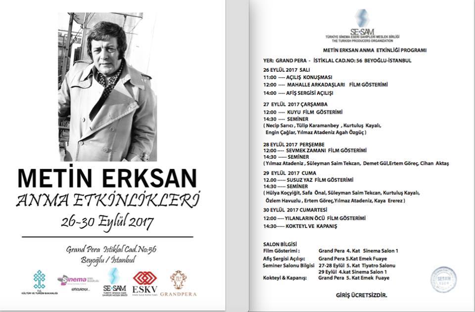 SE-SAM Türkiye Sinema Eseri Sahipleri Meslek Birliği, 26 – 30 Eylül 2017 tarihleri arasında Metin Erksan’ı anma etkinliği başladı.