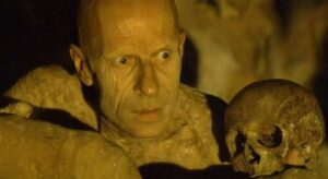 Bu sırada yanardağ patlamaları sürmektedir. Cin melezi bebeğin kozası yırtıldıkça Paul’ün sevgilisinin doğum sancıları başlar ve karnı büyür. Doğuma Sessiz Olan yardım etmektedir. Bu sahnelerde cin melezi bebek güve olarak görselleştirilir. Bebeğin doğumuyla Paul’ün sevgilisi ölür ve Sessiz Olan çığlıklarıyla mağarayı inletir, ardından uzun uzun ağıt yakar. Paul cinin mağarasına gelir ve cinle karşı karşıya gelirler. Elinde Paul’ün babasının kafatası olan cin, babasına ait olan neyi Paul’e uzatır. Paul neyi çalmaya başlayınca babasının ilk karısının öldürülmesini ve babasının cinle gerçekleştirdiği savaşı görmeye başlar.