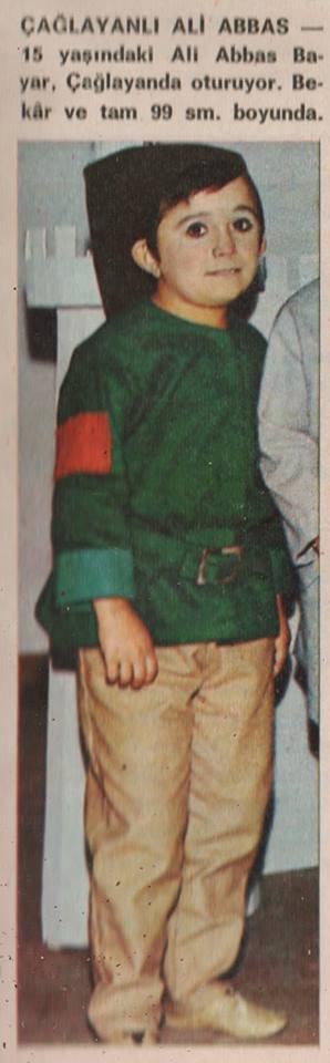 “ÇAĞLAYANLI ALİ ABBAS – 15 yaşındaki Ali Abbas Bayar, Çağlayan(da oturuyor. Bekar ve tam 99 sm. boyunda”