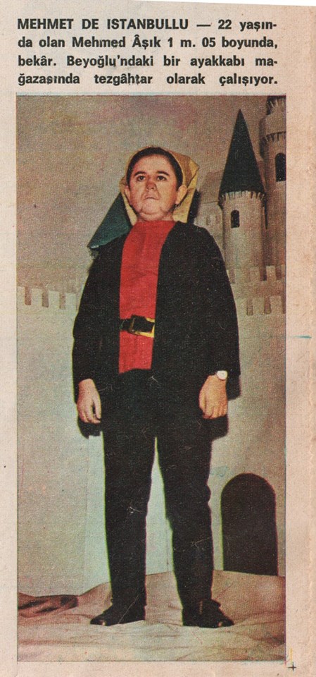 “MEHMET DE İSTANBULLU – 22 yaşında olan Mehmet Aşık 1 m. 05 boyunda , bekar. Beyoğlu’nda bir ayakkabı mağazasında tezgahtar olanak çalışıyor.”