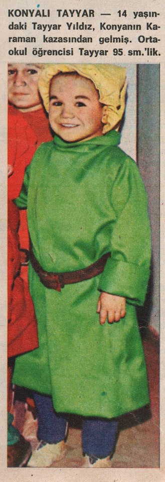 “KONYALI TAYYAR – 14 yaşındaki Tayyar Yıldız, Konya’nın Karaman kasabasından gelmiş. Ortaokul öğrencisi Tayyar 95 sm.’lik.”