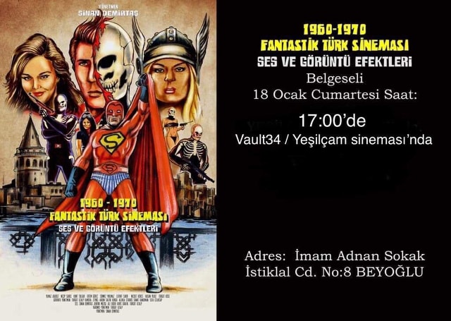 Yönetmenliğini Sinan Demirtaş’ın yaptığı “1960-1970’li Yıllarda Türk Sinemasında Ses ve Görüntü Efekti Üretimi” adlı belgesel film, 18 Ocak Cumartesi günü Beyoğlu Vault 34 (Eski Yeşilçam) sinemasında. Film, Kadıköy Sinemasında yapılan galadan sonra ilk kez sinemaseverlerle buluşuyor.