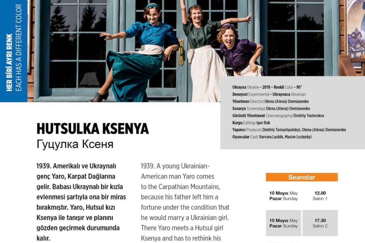 Ukrayna yapımı deneysel türdeki HutsulkaKsenya, bizi 1939’a genç Yaro’nun hikayesine götürür. Yaro’ya babasından bir Ukraynalı’yla evlenmesi şartıyla miras kalmıştır. Ancak Hutsul kızı Ksenya ile tanıştığında bu planı gözden geçirmek zorunda kalır. Her Biri Ayrı Renk seçkisinde olan HutsulkaKsenya FIPRESCI jürisinin değerlendireceği filmlerden.