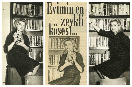 Geçen haftaki dükkan ziyaretimde tatlı bir telaş içersinde buldum Hasan Abi’yi. Mecmuaların birinde gördüğü Rengin Arda’lı reklam şeridini sayfaları çevirerek arıyor, bir kenara ayırdığı dört fotoğrafla aradığı sayfadaki görseli eşleştirmek için sabırsızlanıyordu. Ve bingo… Uzun uğraşlar sonucunda Hayat Mecmuası‘nın Farah Diba kapaklı 5 Şubat 1960 tarihli nüshasının 6. sayfasının sol şeridinde şu görsele rastladık beraber.