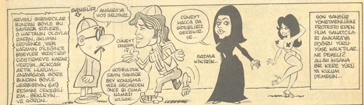 Burada sansür yürüyüşüne bir atıfta bulunulmuş. Cüneyt Arkın ve Fatma Girik göze çarpıyor…